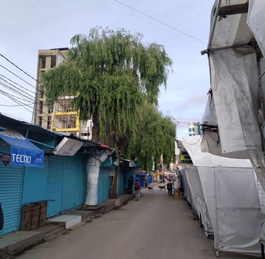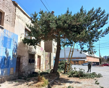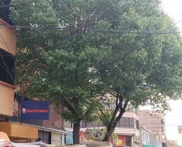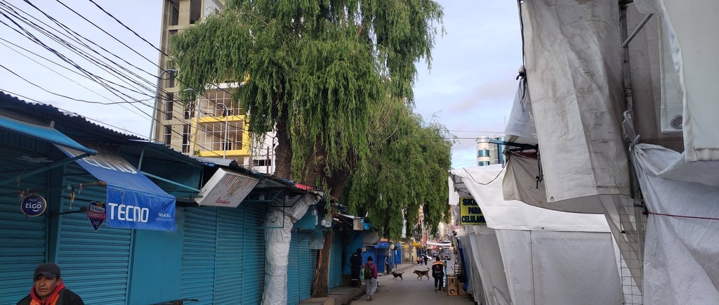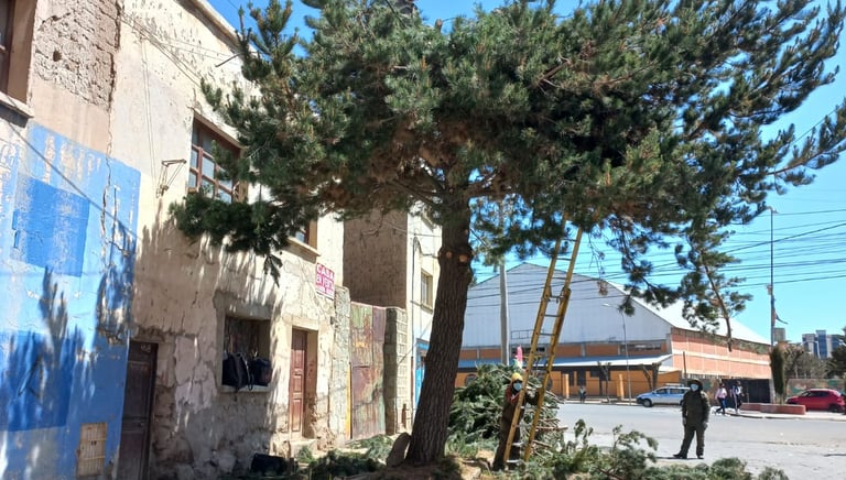 ARBOLES CON PLASTICO CUBRIENDO EL TRONCO. CALLE BOLIVAR ESQ. CALLE VELASCO GALVARRO, ORURO- BOLIVIA.